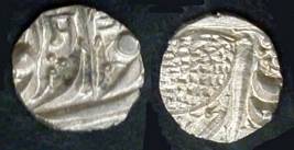 | Description / विवरण | Descrpn./Obv In the centre, a chhatra with Sa and Ta in Gurumukhi script on the left and right of its shaft; traces of the Persian legend seen on the obverse of the bigger Nanakshahi coins of Amritsar mint are also seen. Descrpn./Rev Big peepal leaf and traces of the Persian legend seen on the reverse of the bigger Nanakshahi coins of Amiritsar mint - Shri Amritsarjiv zarb [VS Year] Takht maimanat julus manus Akal Bakht. Especially traces of alif of Akal and te of Takht and maimanat are seen |