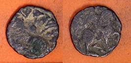 | Description / विवरण | Descrpn./Obv Recumbent bull facing left, wearing jhula (saddle cloth), with trisula (trident) symbol on rump. Above, legend in Sarada script Sri Samantadeva . Descrpn./Rev Rider with lance on caparisoned horse facing right. On left, Sarada letter bhi and on right, Sarada letter ta |