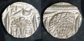 | Description / विवरण | Descrpn./Obv In the centre, a chhatra with Sa and Ta in Gurumukhi script on the left and right of its shaft; traces of the Persian legend seen on the obverse of the bigger Nanakshahi coins of Amritsar mint are also seen. Descrpn./Rev Big peepal leaf and traces of the Persian legend seen on the reverse of the bigger Nanakshahi coins of Amiritsar mint - Shri Amritsarjiv zarb [VS Year] Takht maimanat julus manus Akal Bakht. Especially traces of alif of Akal and te of Takht and maimanat are seen |