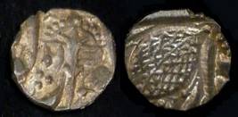 | Description / विवरण | Descrpn./Obv In the centre, a chhatra with Sa and Ta in Gurumukhi script on the left and right of its shaft; traces of the Persian legend seen on the obverse of the bigger Nanakshahi coins of Amritsar mint are also seen. Descrpn./Rev Big peepal leaf and traces of the Persian legend seen on the reverse of the bigger Nanakshahi coins of Amiritsar mint - Shri Amritsarjiv zarb [VS Year] Takht maimanat julus manus Akal Bakht. Especially traces of alif of Akal and te of Takht and maimanat are seen |