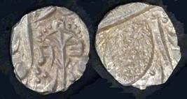 | Description / विवरण | Descrpn./Obv In the centre, a chhatra with Sa and Ta in Gurumukhi script on the left and right of its shaft; traces of the Persian legend seen on the obverse of the bigger Nanakshahi coins of Amritsar mint are also seen. Descrpn./Rev Big peepal leaf and traces of the Persian legend seen on the reverse of the bigger Nanakshahi coins of Amiritsar mint - Shri Amritsarjiv zarb [VS Year] Takht maimanat julus manus Akal Bakht. Especially traces of alif of Akal and te of Takht and maimanat are seen |