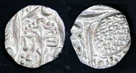 | Description / विवरण | Descrpn./Obv In the centre, a chhatra with Sa and Ta in Gurumukhi script on the left and right of its shaft; traces of the Persian legend seen on the obverse of the bigger Nanakshahi coins of Amritsar mint are also seen. Descrpn./Rev Big peepal leaf and traces of the Persian legend seen on the reverse of the bigger Nanakshahi coins of Amiritsar mint - Shri Amritsarjiv zarb [VS Year] Takht maimanat julus manus Akal Bakht. Especially traces of alif of Akal and te of Takht and maimanat are seen |