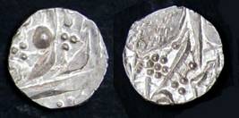 | Description / विवरण | Descrpn./Obv In the centre, a chhatra with Sa and Ta in Gurumukhi script on the left and right of its shaft; traces of the Persian legend seen on the obverse of the bigger Nanakshahi coins of Amritsar mint are also seen. Descrpn./Rev Big peepal leaf and traces of the Persian legend seen on the reverse of the bigger Nanakshahi coins of Amiritsar mint - Shri Amritsarjiv zarb [VS Year] Takht maimanat julus manus Akal Bakht. Especially traces of alif of Akal and te of Takht and maimanat are seen |