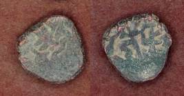 | Description / विवरण | Descrpn./Obv Recumbent bull facing left, wearing jhula (saddle cloth). Above, legend in Sarada script Sri Samantadeva (in cursive letters, mostly truncated and seen partially or off the flan). Descrpn./Rev Rider with lance on caparisoned horse facing right. |