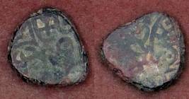 | Description / विवरण | Descrpn./Obv Recumbent bull facing left, wearing jhula (saddle cloth). Above, legend in Sarada script Sri Samantadeva (in cursive letters, mostly truncated and seen partially or off the flan). Descrpn./Rev Rider with lance on caparisoned horse facing right. |