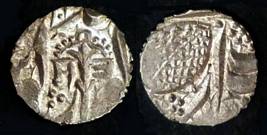 | Description / विवरण | Descrpn./Obv In the centre, a chhatra with Sa and Ta in Gurumukhi script on the left and right of its shaft; traces of the Persian legend seen on the obverse of the bigger Nanakshahi coins of Amritsar mint are also seen. Descrpn./Rev Big peepal leaf and traces of the Persian legend seen on the reverse of the bigger Nanakshahi coins of Amiritsar mint - Shri Amritsarjiv zarb [VS Year] Takht maimanat julus manus Akal Bakht. Especially traces of alif of Akal and te of Takht and maimanat are seen |