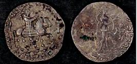 | Description / विवरण | Descrpn./Obv King holding whip, mounted on horse walking right; Greek legend, Basileos Basileon Megalou / Azou. Descrpn./Rev Pallas standing right with shield at left side and spear on left, right hand outstretched ; Kharoshthi legend, Maharajasa rajadirajasa mahatasa / Ayasa |