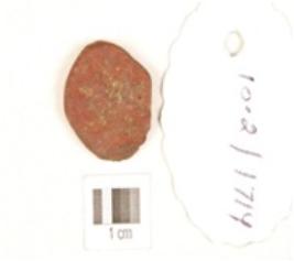 | Description / विवरण | A copper coin, circular shape, legend are not visible on the surface and chemically treated. |