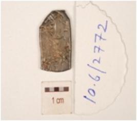 | Description / विवरण | A punch mark silver coin, rectangular in shape, having sun, hill and floral pattern on obverse side and cutting edge. |