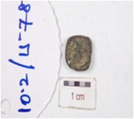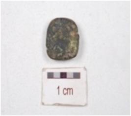 | Description / विवरण | A copper coin with faded motifs and corroded surface. |