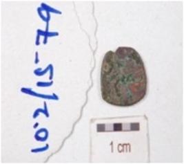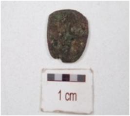 | Description / विवरण | A copper coin has faded motifs on both the sides and corroded surface. |