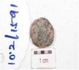 | Description / विवरण | A circular copper coin with highly corroded surface. |