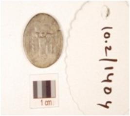 | Description / विवरण | A round shaped silver coin, having image of animal on obverse side and indeterminate image on reverse side, tarnished surface. |
