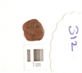 | Description / विवरण | A copper coin, one side motif and corroded surface. |