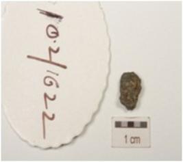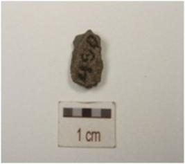 | Description / विवरण | Tiny fragment of copper coin. Rectangular shape slightly broken and corrodate surface. |