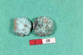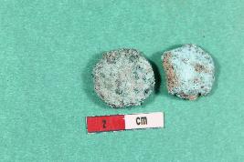 | Description / विवरण | Two coins with incrusted and rough surface. |