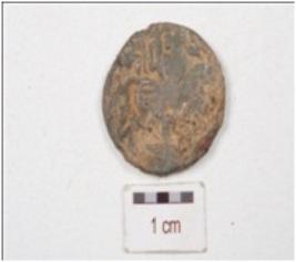 | Description / विवरण | A copper coin, circular in shape, obverse and reverse sides are shown with symbols. |