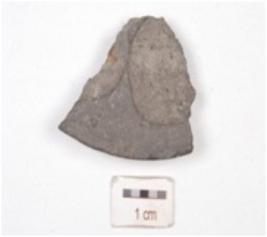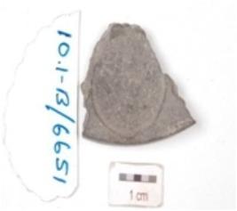 | Description / विवरण | Fragment of terracotta coin mould with three coin impression visible on both sides, brahmi letter on one and faded motifs. |