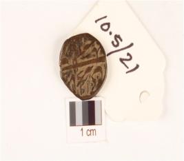 | Description / विवरण | Circular copper coin, bilingual script on both sides smooth devnagri on reverse side and arabic on ob-verise, inscription partially cut and worn out. |