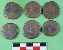 | Description / विवरण | Round shape coin depicting king at altar on obverse, and Deity sun HAIO on reverse. |