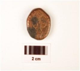 | Description / विवरण | A small thick copper coin called Falus , round in shape, cutting edges, arabic inscription is scripted on both reverse and obverse sides, black stains on surface. |