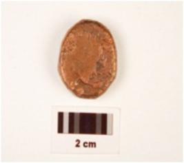 | Description / विवरण | A small thick copper coin called Falus , round in shape, cutting edges, worn out from both reverse and obverse sides, stains on surface. |