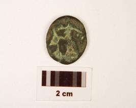 | Description / विवरण | A small thin copper coin, round in shape, worn out from reverse and obverse sides, cutt marks on edges, formation of patina is visible on surface. |