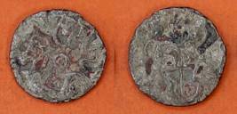 | Description / विवरण | Descrpn./Obv Recumbent bull facing left, wearing jhula (saddle cloth), with trisula (trident) symbol on rump. Above, legend in Sarada script Sri Samantadeva . Descrpn./Rev Rider with lance on caparisoned horse facing right. On left, Sarada letter bhi and on right, Sarada letter ta |