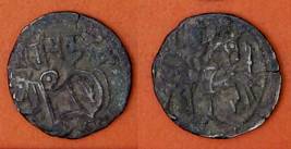 | Description / विवरण | Descrpn./Obv Recumbent bull facing left, wearing jhula (saddle cloth), with trisula (trident) symbol on rump. Above, legend in Sarada script Sri Samantadeva . Descrpn./Rev Rider with lance on caparisoned horse facing right. On left, Sarada letter bhi and on right, Sarada letter ta |
