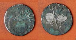 | Description / विवरण | Descrpn./Obv Recumbent bull facing left, wearing jhula (saddle cloth), with trisula (trident) symbol on rump. Above, legend in Sarada script Sri Samantadeva . Descrpn./Rev Rider with lance on caparisoned horse facing right. On left, Sarada letter bhi and on right, Sarada letter ta |