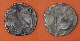 | Description / विवरण | Descrpn./Obv Recumbent bull facing left, wearing jhula (saddle cloth), with trisula (trident) symbol on rump. Above, legend in Sarada script Sri Samantadeva . Descrpn./Rev Rider with lance on caparisoned horse facing right. On left, Sarada letter bhi and on right, Sarada letter ta |