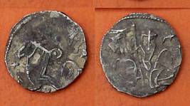 | Description / विवरण | Descrpn./Obv Recumbent bull facing left, wearing jhula (saddle cloth), with trisula (trident) symbol on rump. Above, legend in Sarada script Sri Samantadeva . Descrpn./Rev Rider with lance on caparisoned horse facing right. On left, Sarada letter bhi and on right, Sarada letter ta |