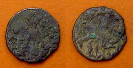 | Description / विवरण | Descrpn./Obv Recumbent bull facing left, wearing jhula (saddle cloth), with trisula (trident) symbol on rump. Above, legend in Sarada script Sri Samantadeva . Descrpn./Rev Rider with lance on caparisoned horse facing right. On left, Sarada letter bhi and on right, Sarada letter ta |