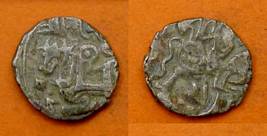 | Description / विवरण | Descrpn./Obv Recumbent bull facing left, wearing jhula (saddle cloth), with trisula (trident) symbol on rump. Above, legend in Sarada script Sri Samantadeva . Descrpn./Rev Rider with lance on caparisoned horse facing right. On left, Sarada letter bhi and on right, Sarada letter ta |