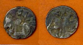 | Description / विवरण | Descrpn./Obv Recumbent bull facing left, wearing jhula (saddle cloth), with trisula (trident) symbol on rump. Above, legend in Sarada script Sri Samantadeva . Descrpn./Rev Rider with lance on caparisoned horse facing right. On left, Sarada letter bhi and on right, Sarada letter ta |