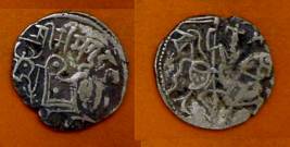 | Description / विवरण | Descrpn./Obv Recumbent bull facing left, wearing jhula (saddle cloth), with trisula (trident) symbol on rump. Above, legend in Sarada script Sri Samantadeva . Descrpn./Rev Rider with lance on caparisoned horse facing right. On left, Sarada letter bhi and on right, Sarada letter ta |