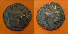| Description / विवरण | Descrpn./Obv Recumbent bull facing left, wearing jhula (saddle cloth), with trisula (trident) symbol on rump. Above, legend in Sarada script Sri Samantadeva . Descrpn./Rev Rider with lance on caparisoned horse facing right. On left, Sarada letter bhi and on right, Sarada letter ta |