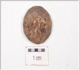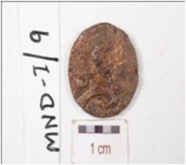| Description / विवरण | A copper coin, standing male figurine, holding a trident with left hand and kharosti script on the obverse and standing deity and tamgha symbol on the reverse, chemically treated surface. |