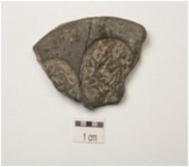 | Description / विवरण | Fragment of a terracotta coin mould, four individual circular coin mould visible on both surface with negative impression. |