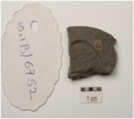 | Description / विवरण | Fragment of a terracotta coin mould, three individual circular coin mould visible on both surface with negative impression. |