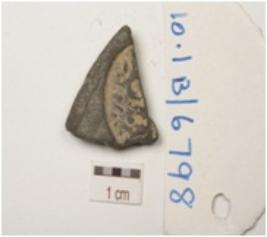 | Description / विवरण | Fragment of terracotta coin mould, two individual circular coin impression partly visible on both the surface with negative impressions in brahmi legend. |