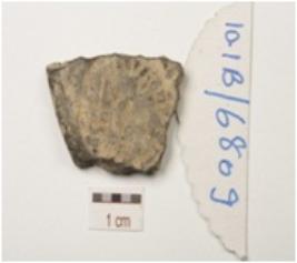 | Description / विवरण | Fragment of terracotta coin mould, three individual circular coin impression partly visible on both the surface with negative impressions in brahmi legend. |