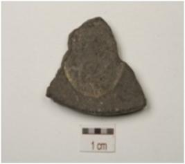 | Description / विवरण | Fragment of terracotta circular coin mould, three individual coin impression. Partly visible on both the surface with negative impression. |