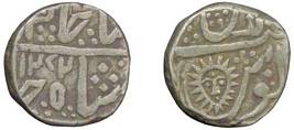 | Description / विवरण | Descrpn./Obv Shah Alam badshah ghazi sikkah mubarak. Descrpn./Rev Manus/ maimanat Julus zarb (Malharnagar) sun symbol above the letter seen |
