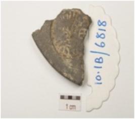 | Description / विवरण | Fragment of terracotta coin mould, three individual circular coin impression partly visible on both the surface with negative impressions in brahmi legend. |