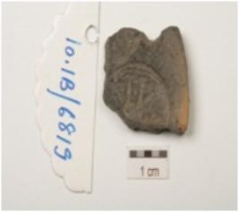 | Description / विवरण | Fragment of terracotta circular coin mould with negative impressions of brahmi legend. |