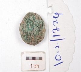 | Description / विवरण | A copper coin, round in shape surface is rough and corroded, patina formated on it. |