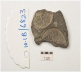 | Description / विवरण | Fragment of terracotta coin mould, four individual circular coin impression partly visible on both the surface with negative impressions in brahmi legend. |