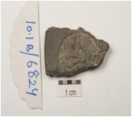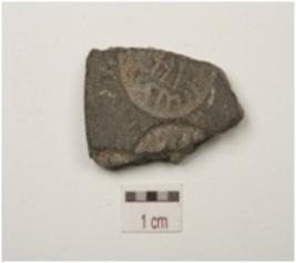 | Description / विवरण | Fragment of terracotta coin mould, three individual circular coin impresssion. Partly visible on both the surface with negative impression in brahmi legend. |