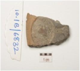 | Description / विवरण | Fragment of terracotta coin mould, two individual circular coin impression partly visible on both the surface with negative impression. |